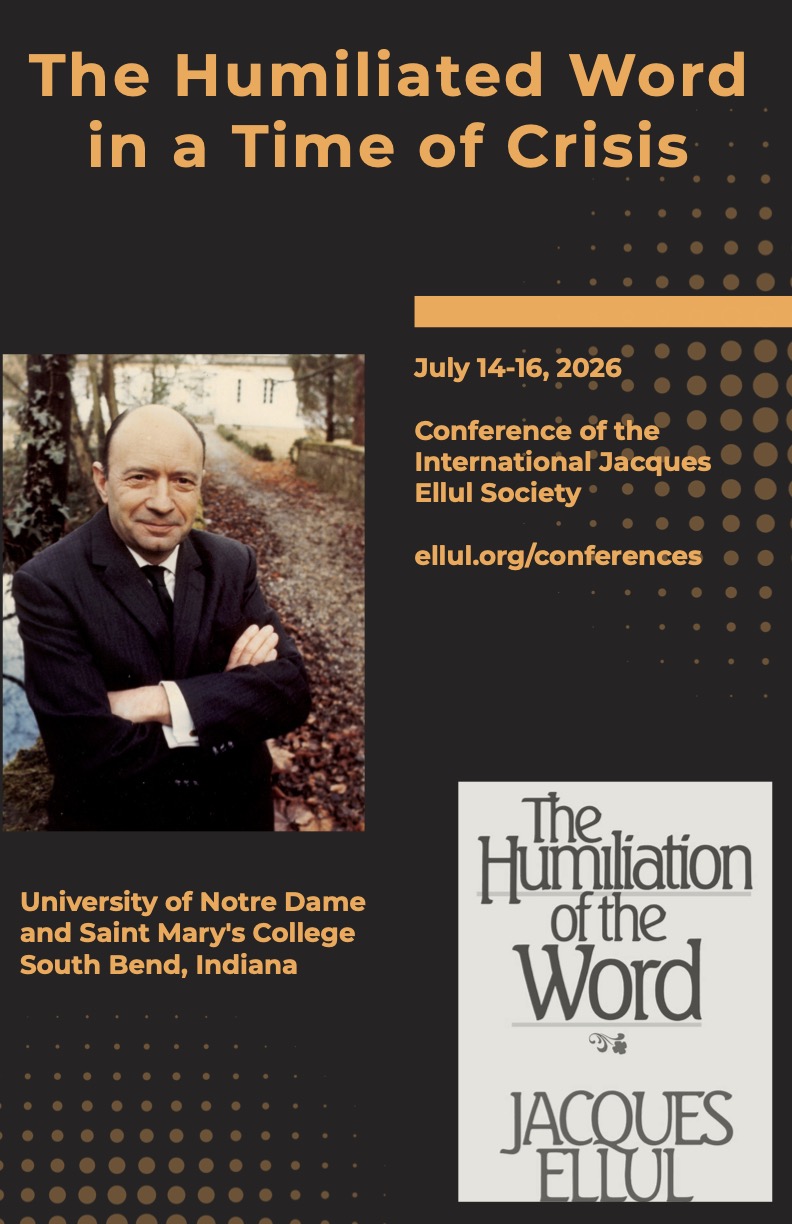 From July 14–16, 2026, the International Jacques Ellul Society will host a conference titled The Humiliated Word in a Time of Crisis at the University of Notre Dame and Saint Mary’s College. The gathering will bring together scholars across disciplines to examine the role of language, communication, teaching, and truth in a technology- and media-saturated culture.